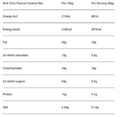 Karamell (27%) [Invertzuckersirup, Glukosesirup, Sheaöl, Zucker, Feuchthaltemittel (Glycerin), Johannisbrotmehl, Oligofruktose, natürliches Aroma, Emulgatoren (Lecithine (Raps, Sonnenblumenlecithin)), Salz, Wasser, Geliermittel (Pektin), Monodiglyceride von Speisefettsäuren], pflanzliche Kuvertüre (20%) [Zucker, Kakaobutter, Kakaomasse, Erdnusspulver, resistentes Dextrin, Emulgatoren (Rapslecithin), natürliches Aroma], geröstete Erdnusspaste (14%), Hafermehl, Kakaobutter, geröstete Erdnüsse (7%), Erdnussmehl, Zucker, Feuchthaltemittel (Glycerin), natürliches Aroma, natürliche Stärke, Meersalz, Gerstenmalzextrakt.
