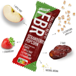Popcorn unhealthy? No way! We only use corn kernels and some oil for the popcorn in our FBR Strawberry Popcorn bar. The combination with strawberry still makes the popcorn taste deliciously sweet. And only 87 Kcal per bar.